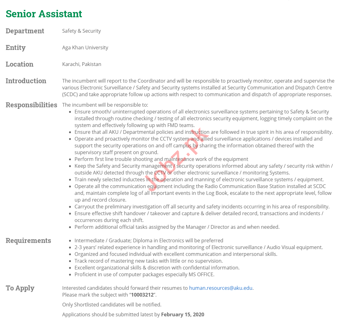 Aga Khan University AKU Karachi Jobs 2020 For Assistant