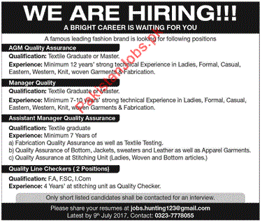 Apply as per details in job advertisement. Login to view further details of how to apply via https://www.jobz.pk online.