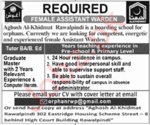 Agosh Al Khidmat is looking for candidates for following posts as per job advertisement published in daily Jang Newspaper of September 11, 2022 for location Rawalpindi, rawalpindi Punjab Pakistan: