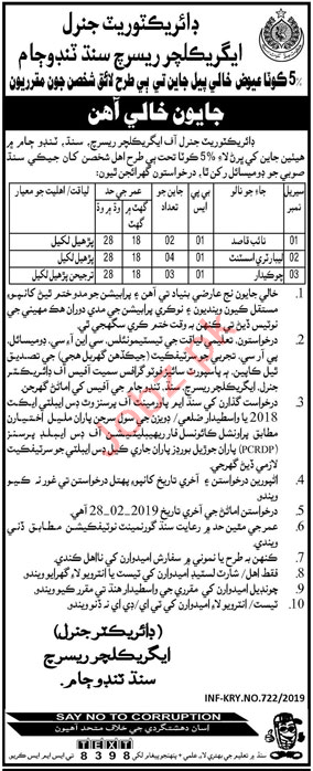 Vacancies in Agriculture Department Advertisement February 2019