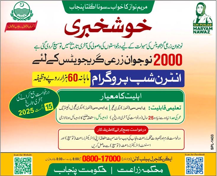 Agriculture Department is looking for candidates for following posts as per job advertisement published in daily The News Newspaper of August 8, 2025 for location Lahore, lahore Punjab Pakistan: