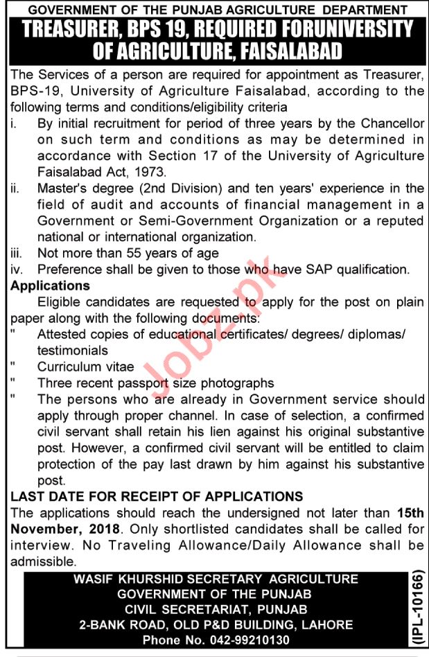 Vacancies in University of Agriculture UAF Advertisement October 2018