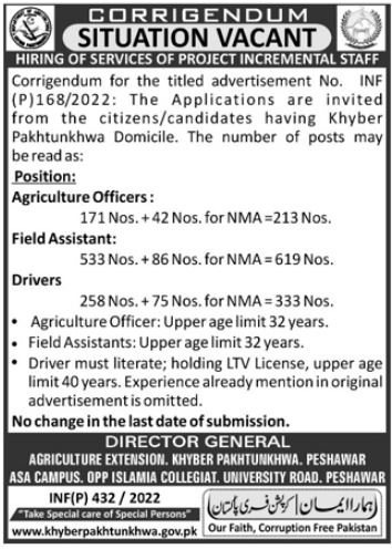 Vacancies in Agriculture Extension KPK Advertisement January 2022