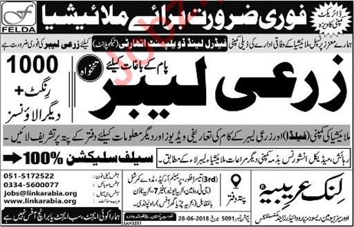 Latest Link Arabia Overseas Recruitment Company Labor Posts Malaysia 2025