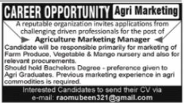 Agriculture Marketing Manager Job 2020 In Islamabad