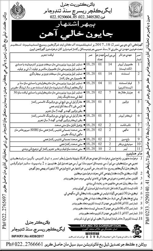 Latest Directorate General Agriculture Management Posts Tendo Jam 2025