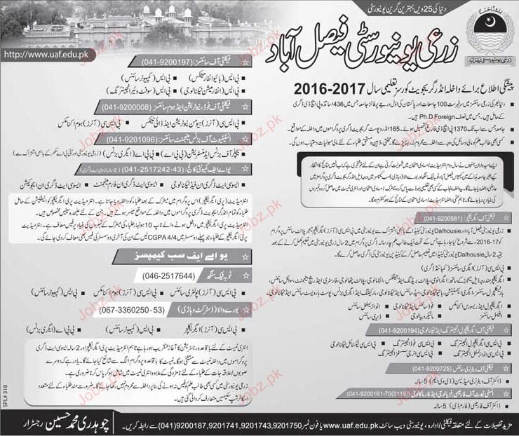 Agriculture University Faisalabad Admission in BS in Faisalabad. Read newspaper ad for exact details.