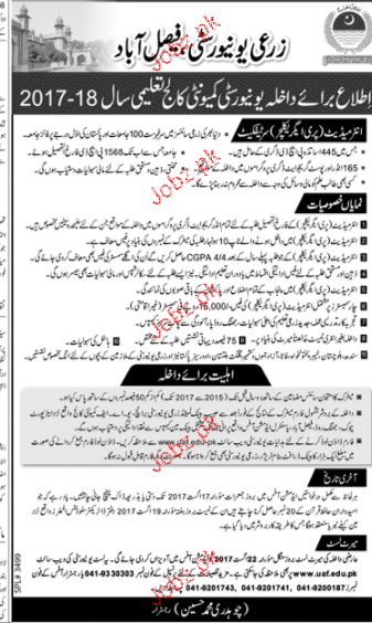 Agriculture University Faisalabad Admission in Courses in Faisalabad. Read newspaper ad for exact details.