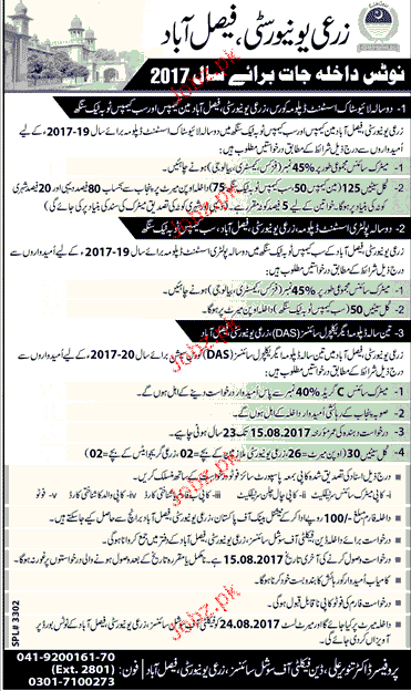 Agriculture University Faisalabad Admission in Diploma in Faisalabad. Read newspaper ad for exact details.