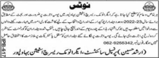 Latest Agriculture Research Station Human Resource Posts Bahawalpur 2025