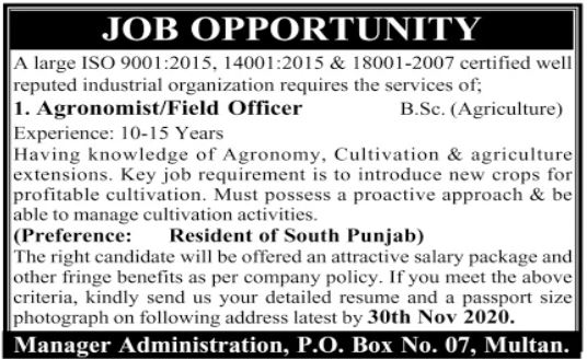Agronomist & Field Officer Jobs 2020 In Multan