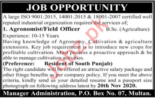 Agronomist Officer & Field Officer Jobs 2020 In Multan