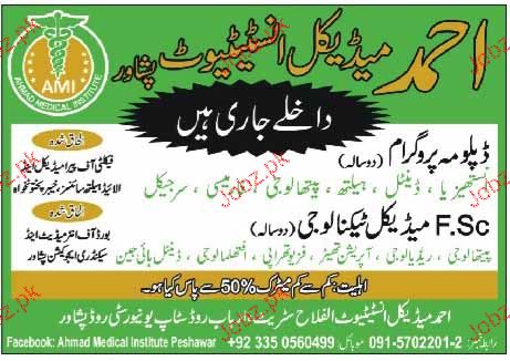 Ahmed Medical Institute Peshawar Admission in 2 Year Diploma in Dental, Health, Pathology, Pharmacy & Surgical. and Fsc Medical Diploma of Year Programs in Pathology and Radiology in Peshwar. Read newspaper ad for exact details.