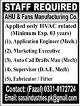 Vacancies in AHU FANS Manufacturing Company Advertisement December 2020
