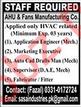 Vacancies in AHU FANS Manufacturing Company Advertisement December 2019