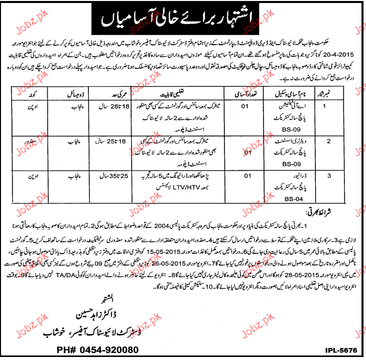 Apply as per details in job advertisement. Login to view further details of how to apply via https://www.jobz.pk online.