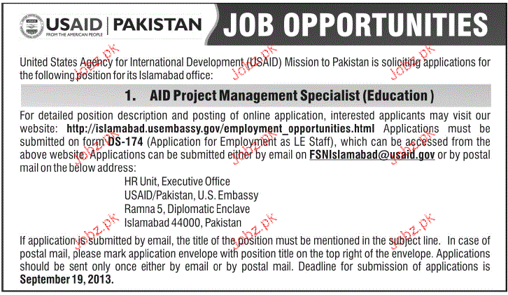 Aid Project Management Specialist Job Opportunity