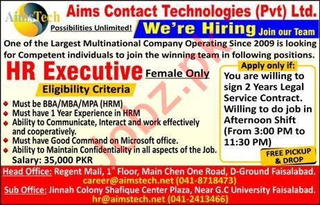 Latest Aims Contact Technologies Human Resource Posts Faisalabad 2025