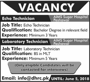 AIMS Sugar Hospital Peshawar Echo Technicians Jobs