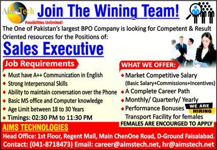 Latest Aims Technologies Sales Posts Faisalabad 2025
