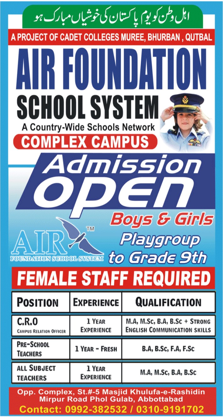 Latest Air Foundation School System Teaching Posts Abbottabad 2025