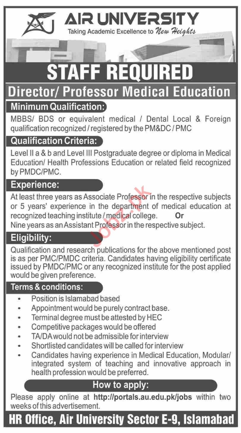 Apply as per details in job advertisement. Login to view further details of how to apply via https://www.jobz.pk online.