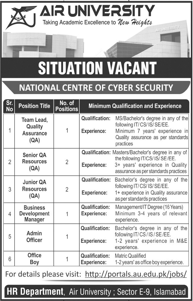 Vacancies in Air University Advertisement June 2021