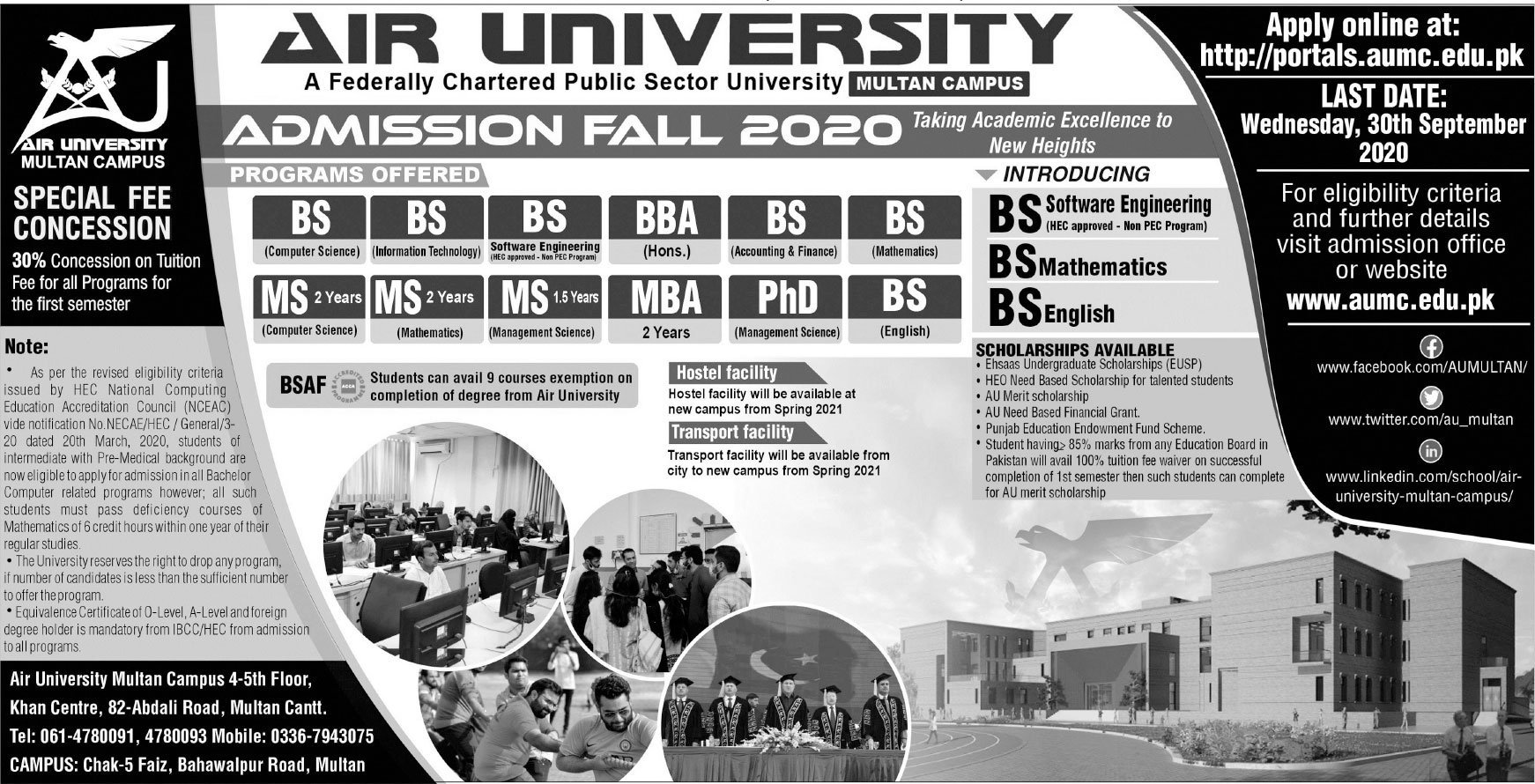 Air University Multan Campus Admissions