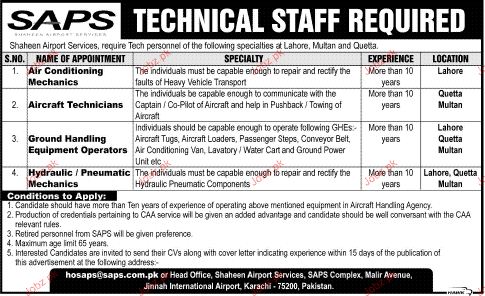 Apply as per details in job advertisement. Login to view further details of how to apply via https://www.jobz.pk online.