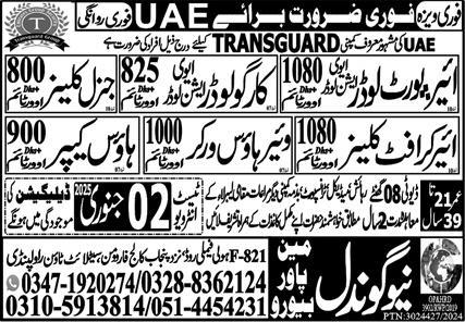 New Gondal Manpower Bureau invites applications for job positions advertised in daily Express dated 28 December 2024 for following vacancies in Abu Dhabi, abu dhabi UAE.