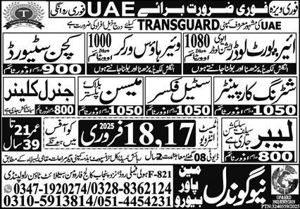 New Gondal Manpower Bureau is looking for candidates for following posts as per job advertisement published in daily Express Newspaper of February 15, 2025 for location Abu Dhabi, sharjah UAE: