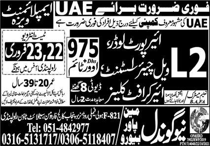 New Gondal Manpower Bureau Abu Dhabi UAE invites applications from eligible candidates for the post of wheel alignment mechanic, airport cleaner and aircraft cleaner as per advertisement of February 18, 2022 published in daily Express Newspaper. Preferred Education is Matric and Middle etc.