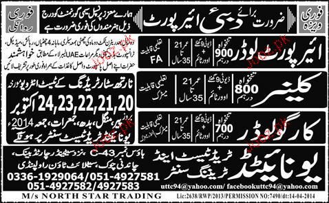 Cargo Loaders, Airport Loaders and Aircraft Cleaners are required in Dubai.