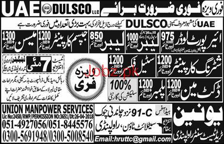 Airport Loaders, Labors, Gypsum Carpenters Job Opportunity