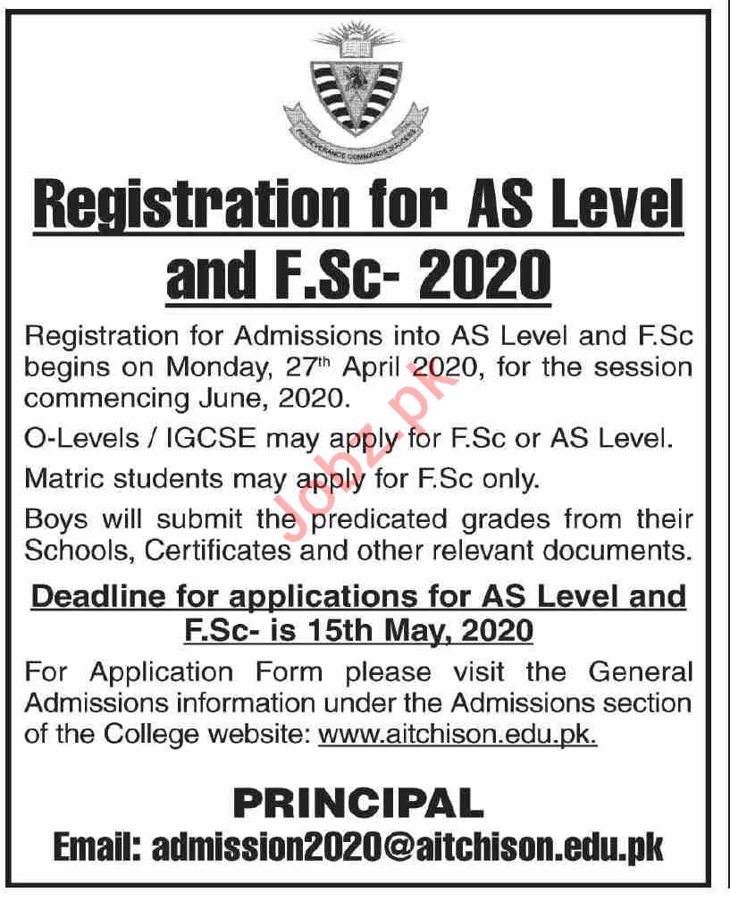 Aitchison College Lahore, Pakistan are announcing admissions summer 2020 for the classes of O Level, F Sc in Pre Medical and Pre Engineering. Last date of submission of applications form 15th May 2020. Read newspaper ad for exact details.