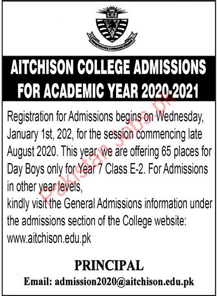 Aitchison College has announced admissions for Academic Years 2020-2021 in Year 7 Class E-2 and Other Year Levels in Islamabad. For Further detail about Admissions please visit the website. Read newspaper ad for exact details.