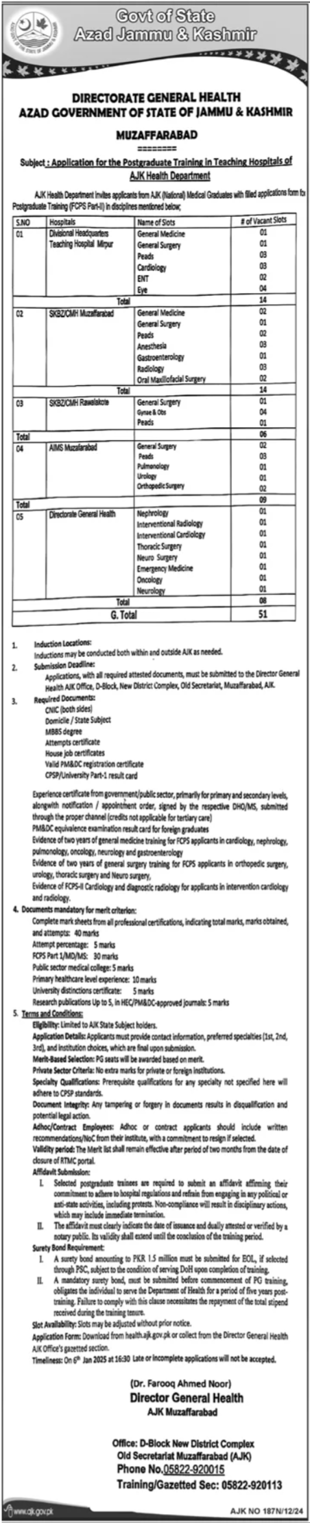 Health Department jobs advertisement dated about 21 December 2024 in daily Dunya Newspaper invites application for the vacant post of fcps ii trainee and postgraduate trainee in Muzaffarabad, muzaffarabad AJK Pakistan. Preferred Education is MBBS etc.