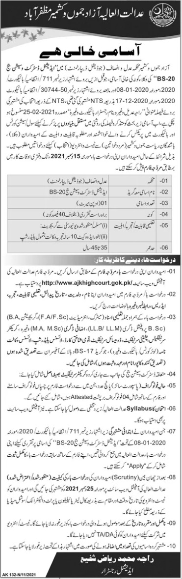 Latest Judicial Department Law Justice and Human Rights Posts Muzaffarabad 2025