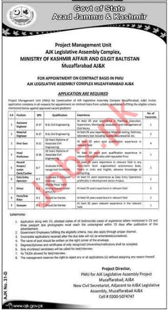 AJK Legislative Assembly Complex PMU Jobs 2018 For Engineers