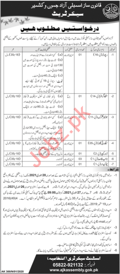Vacancies in AJK Legislative Assembly Advertisement January 2021