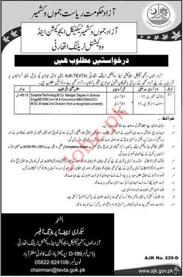 Latest Technical Educational & Vocational Training Authority AJKTEVTA Management Posts Muzaffarabad 2025