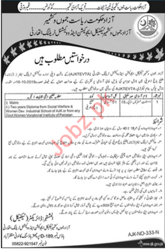 AJK TEVTA Technical Educational Jobs 2020 For Assistant