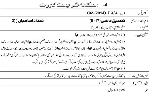 AJKPSC District Judge Job In Sharia Court