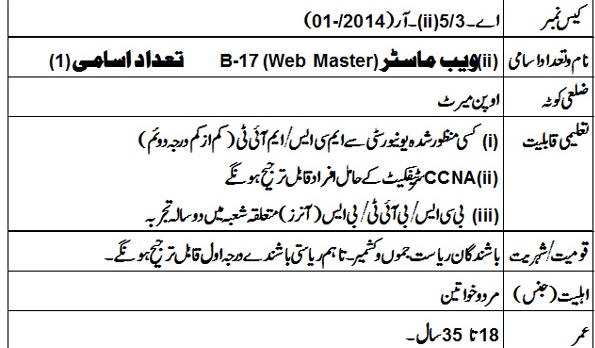 Apply as per details in job advertisement. Login to view further details of how to apply via https://www.jobz.pk online.