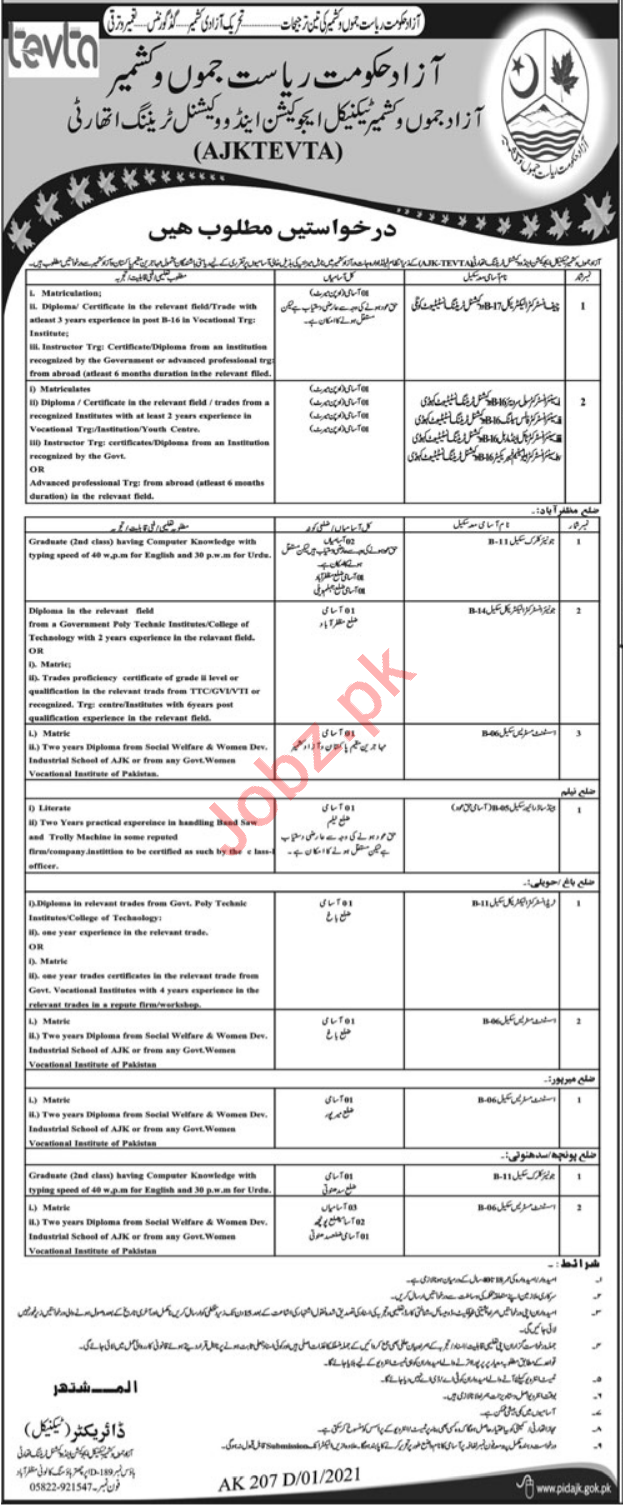 Latest Technical Educational & Vocational Training Authority AJKTEVTA Education Posts Muzaffarabad 2025