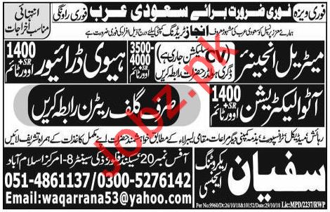 Vacancies in Sufyan Recruiting Agency Advertisement November 2018