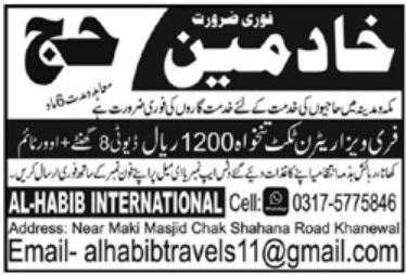 Al Habib International invites applications for job positions advertised in daily Mashriq dated 27 February 2022 for following vacancies in Saudi Arabia, saudi arabia Saudi Arabia.