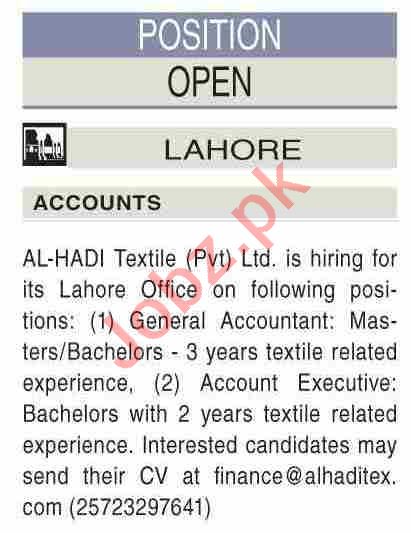 Al Hadi Textile Lahore Jobs 2020 For General Accountant