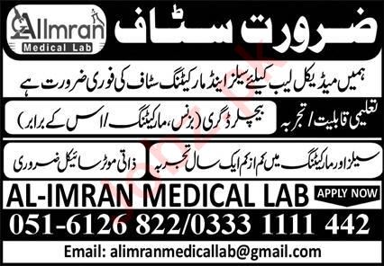 Al Imran Medical Lab is looking for candidates for following posts as per job advertisement published in daily Express Newspaper of May 27, 2024 for location Islamabad, islamabad Islamabad Pakistan: