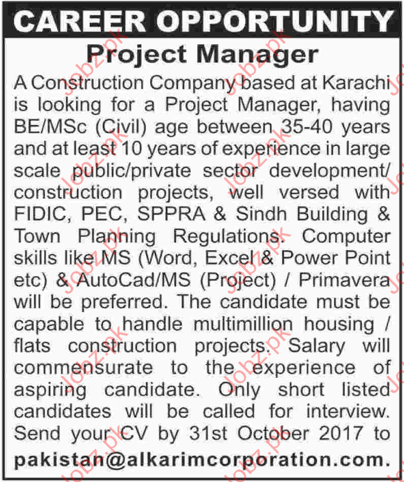 Al Karim Corporation Jobs Karachi 2017